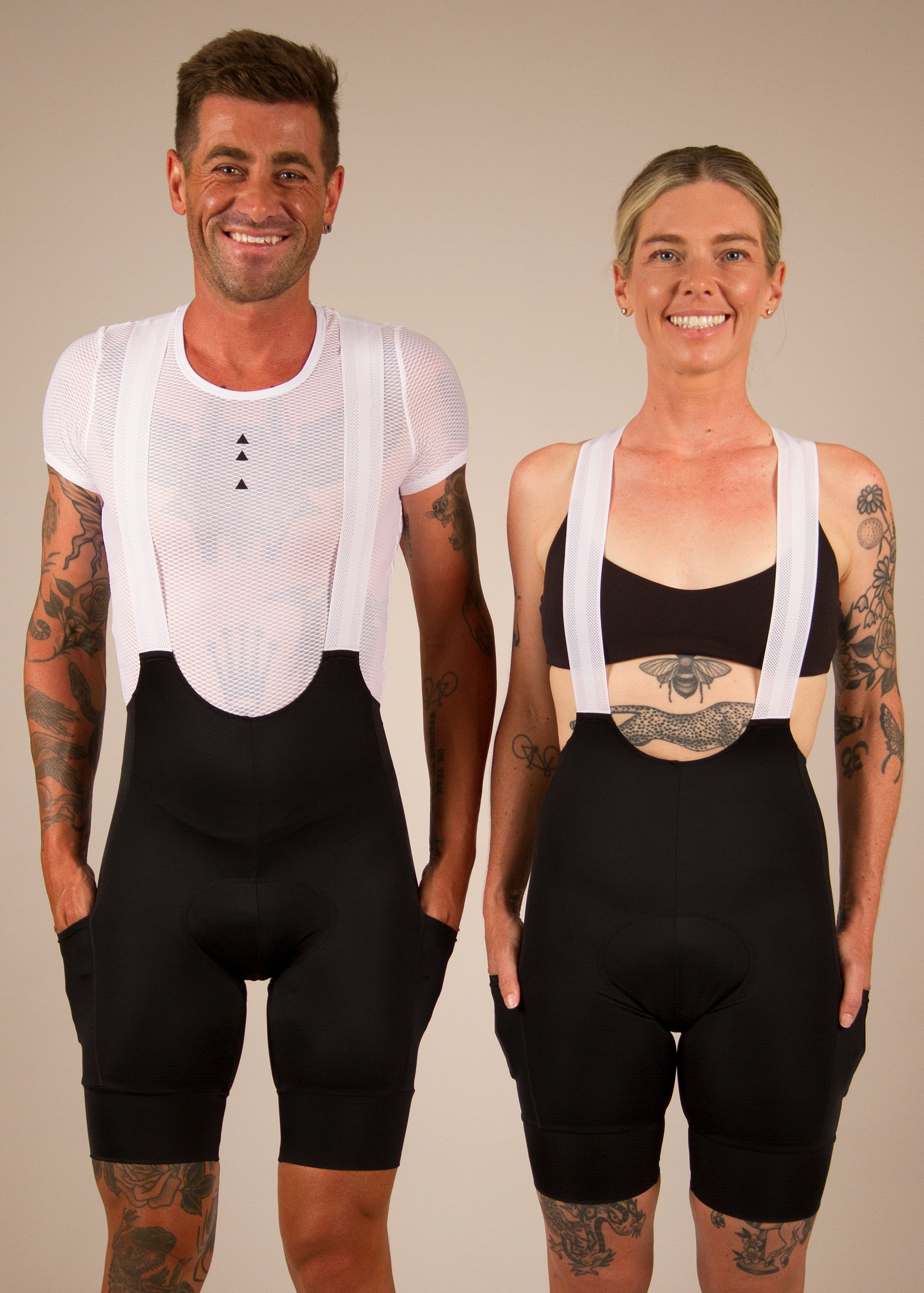 Our kits are race cut and made to feel good. The jerseys are a tight race cut and the bibs are compression. Both are designed to be skin tight to move with your body correctly. The bibs need to be wriggled up your thighs and body into the correct position and height you prefer. The chamois must be pulled up sitting flush with your skin.