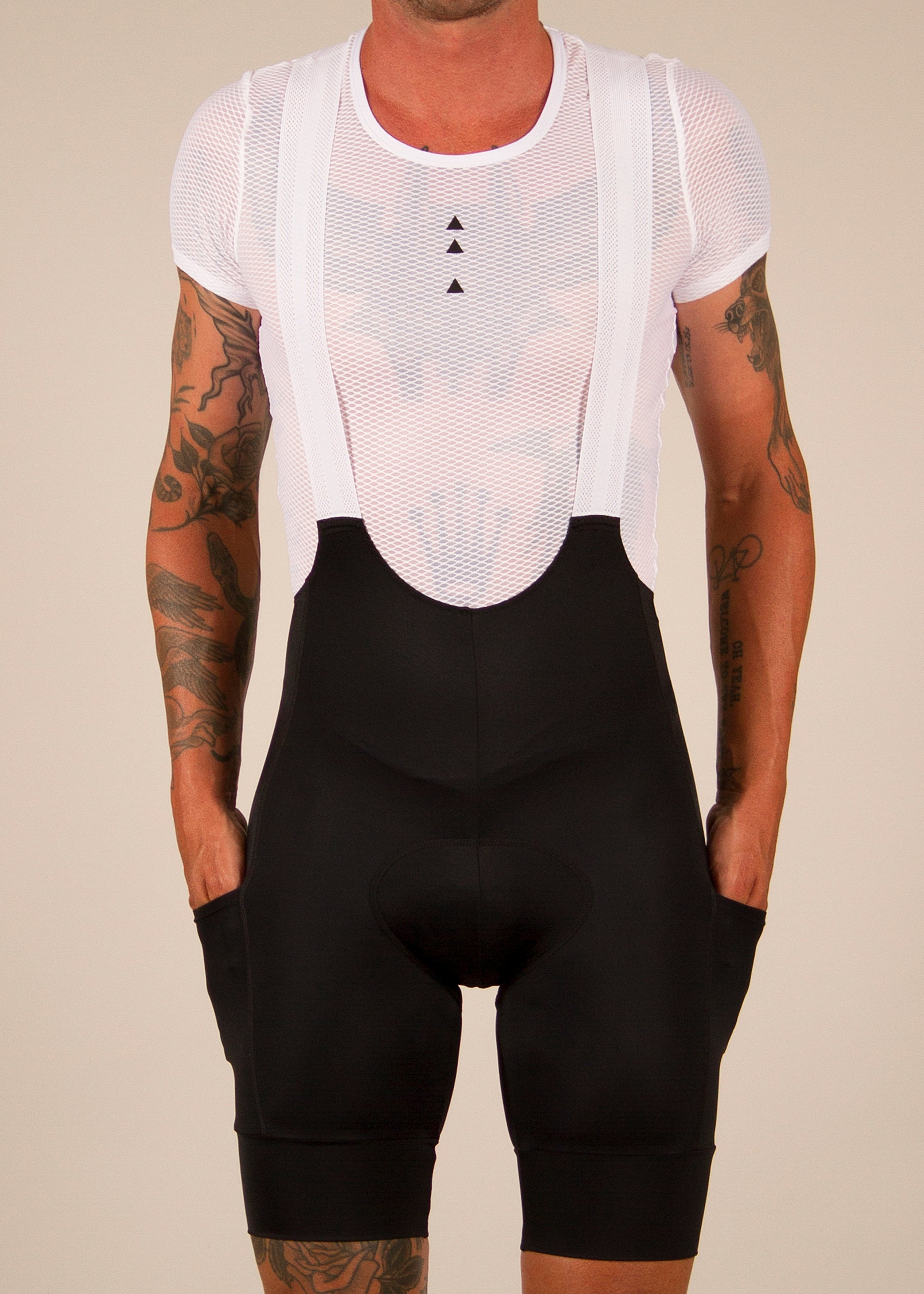 Upgraded Bib Design – Now featuring compression lycra from thigh to brace elastic, contoured to lay comfortably across your belly, sides and back. No more belly seam from lycra to mesh.