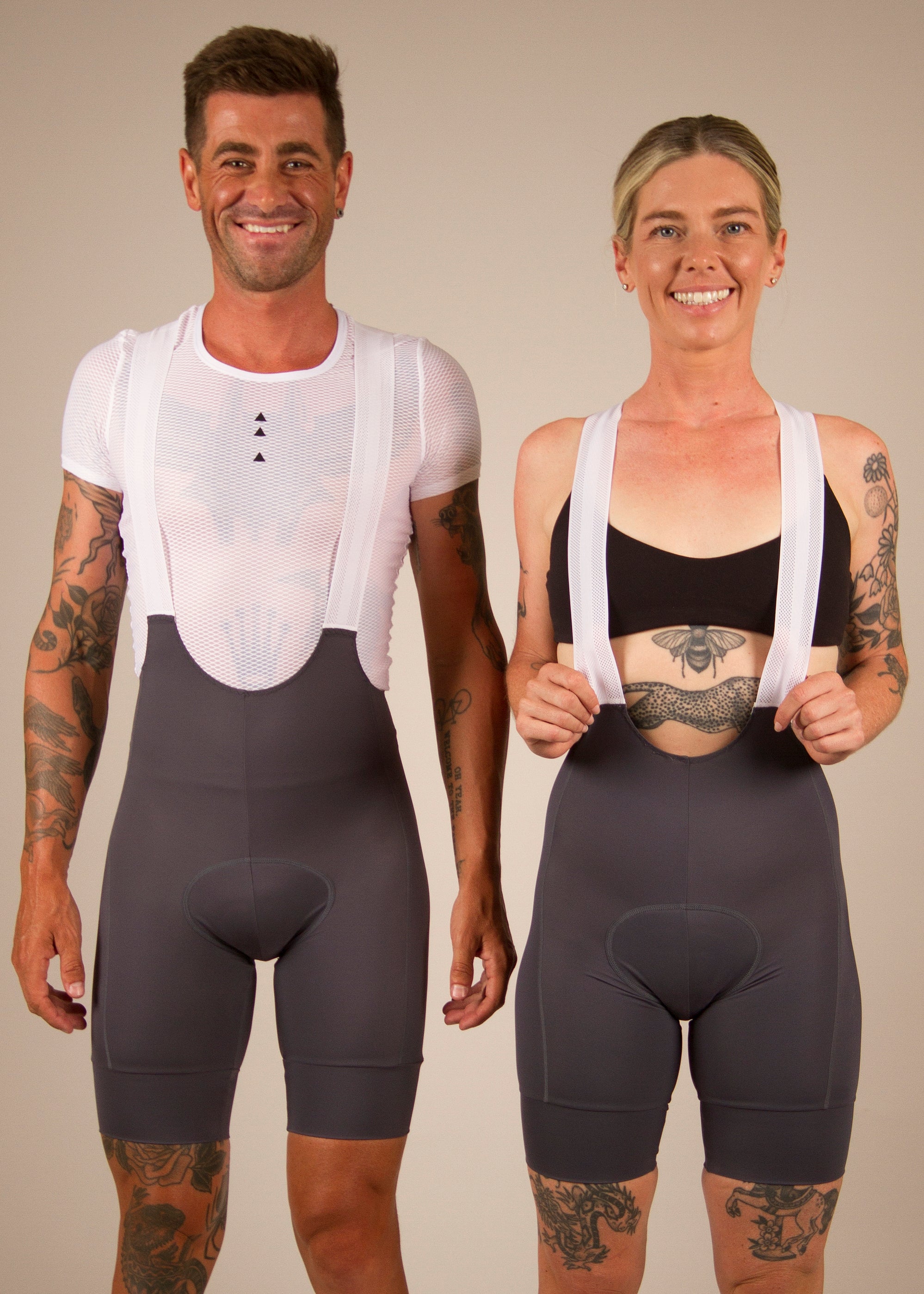 Our kits are race cut and made to feel good. The jerseys are a tight race cut and the bibs are compression. Both are designed to be skin tight to move with your body correctly. The bibs need to be wriggled up your thighs and body into the correct position and height you prefer. The chamois must be pulled up sitting flush with your skin.