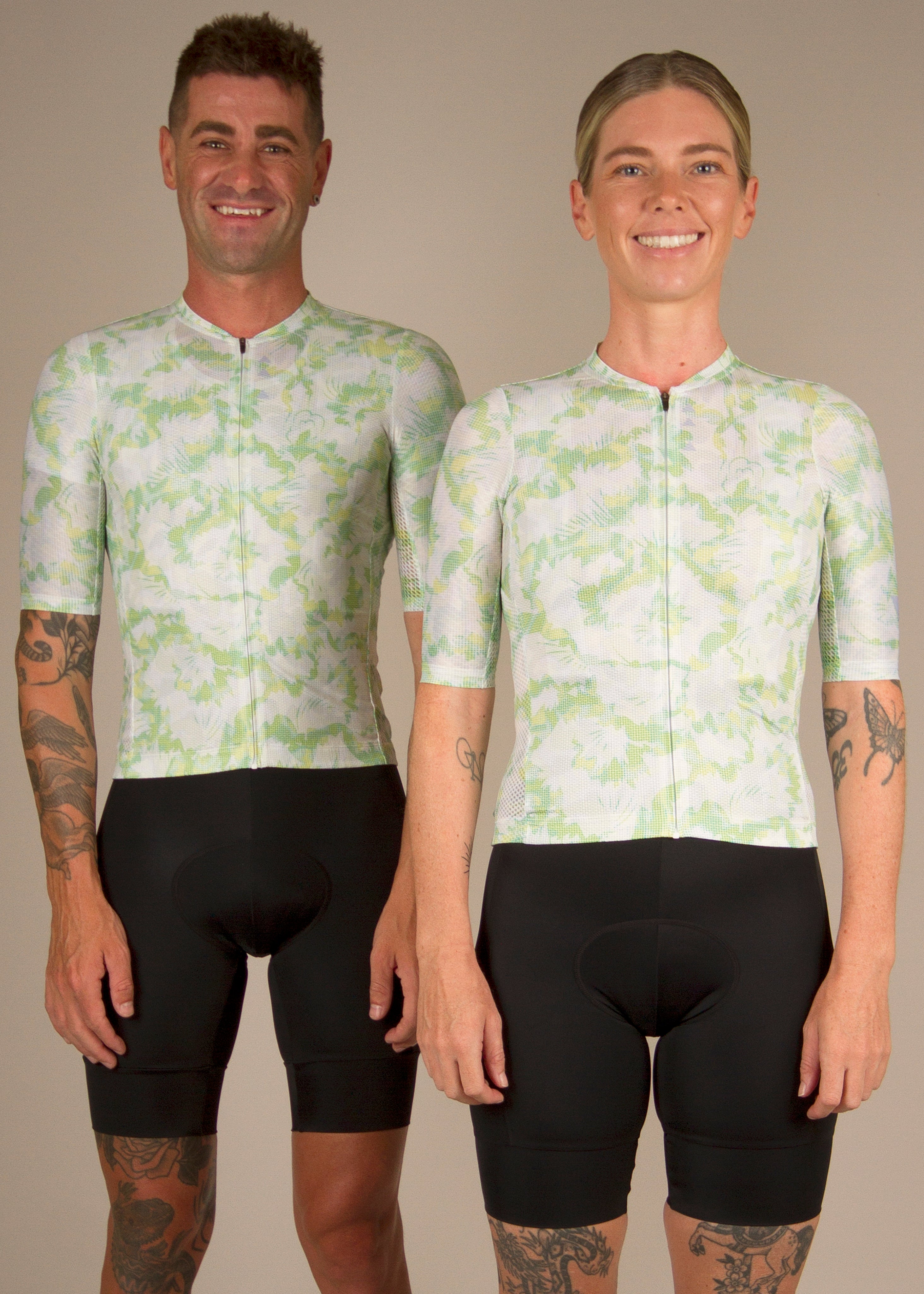 Our kits are race cut and made to feel good. The jerseys are a tight race cut and the bibs are compression. Both are designed to be skin tight to move with your body correctly. The bibs need to be wriggled up your thighs and body into the correct position and height you prefer. The chamois must be pulled up sitting flush with your skin.