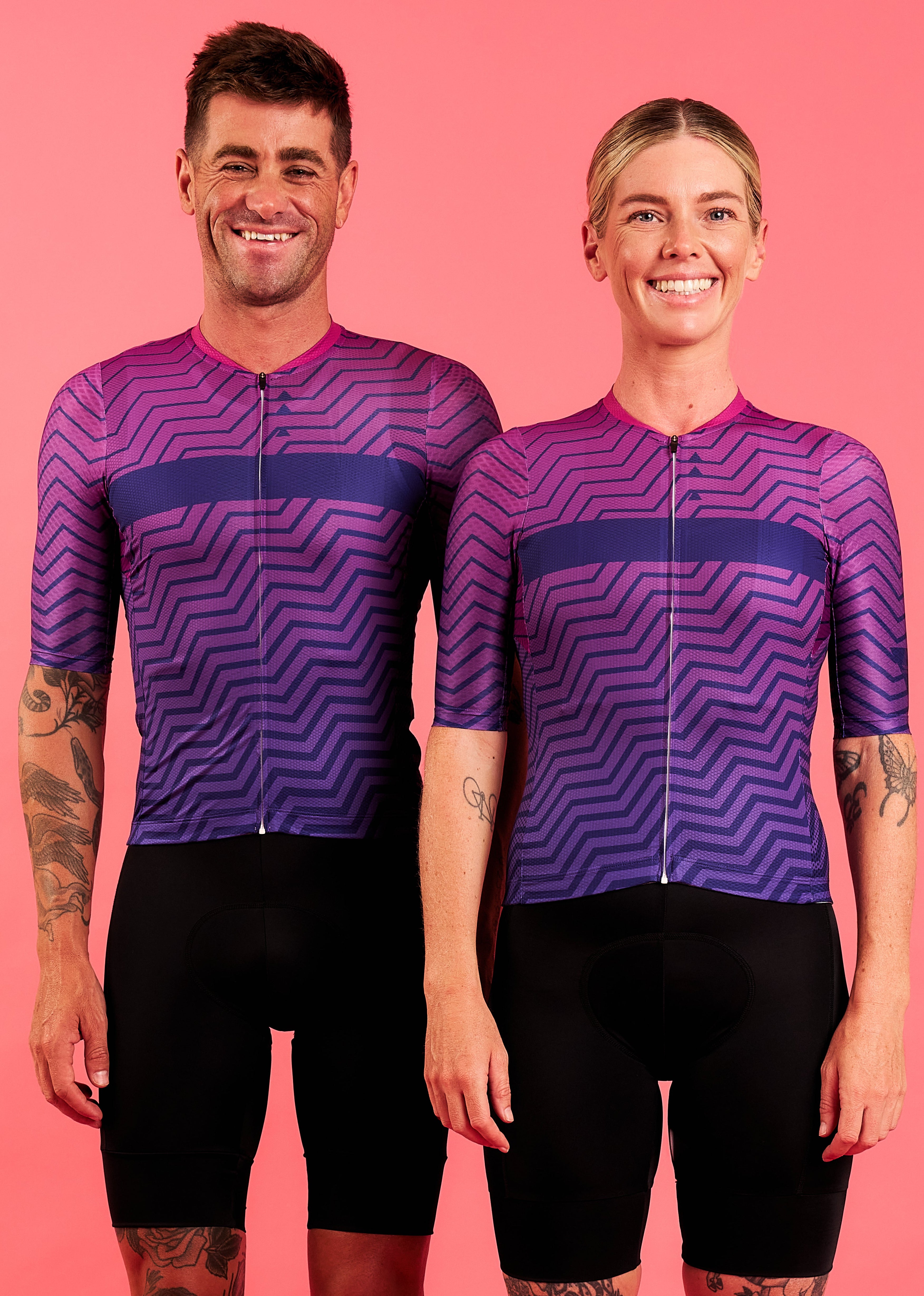 Our kits are race cut and made to feel good. The jerseys are a tight race cut and the bibs are compression. Both are designed to be skin tight to move with your body correctly. The bibs need to be wriggled up your thighs and body into the correct position and height you prefer. The chamois must be pulled up sitting flush with your skin.